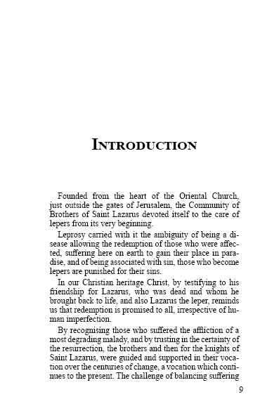Originating from a community of Armenian monks active since the ninth century, the Order of Saint Lazarus of Jerusalem devoted itself from its inception to welcoming and caring for lepers.